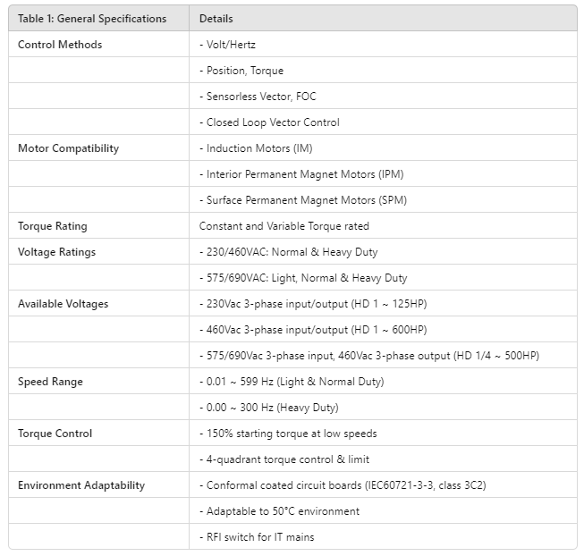 Speed Range - 0.01 ~ 599 Hz (Light & Normal Duty)