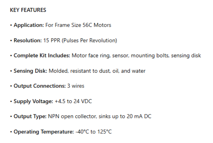 • Complete Kit Includes: Motor face ring, sensor, mounting bolts, sensing disk