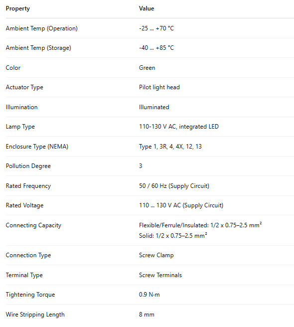 CL2-513G, Pilot Light, Green Lens, 110-130V AC/DC, CL2 Series