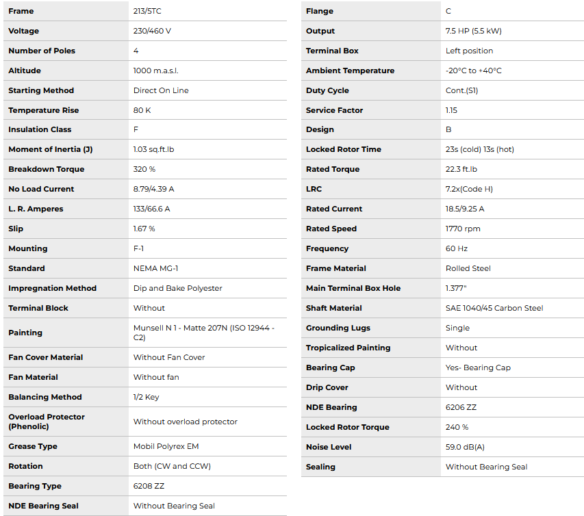 CP007404NPW01, Rolled Steel NEMA Premium Efficiency 7.5Hp 1770 Rpm 4P 213/5TC 3Ph 230/460//190-220/380-415 V 60 Hz IC01 - ODP - Foot-mounted