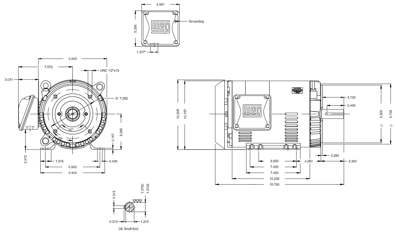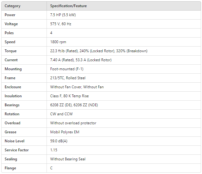 CP007504NPW01, Rolled Steel NEMA Premium Efficiency 7.5Hp 1770 Rpm 4P 213/5TC 3Ph 575 V 60 Hz IC01 - ODP - Foot-mounted