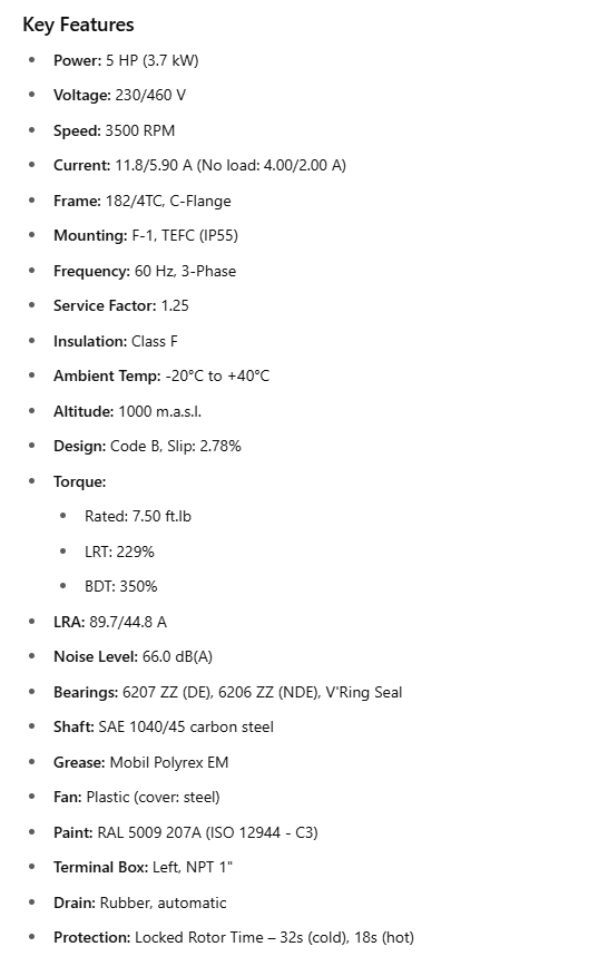 Frequency: 60 Hz, 3-Phase