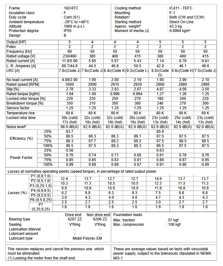 CT005402NPW22, W22 NEMA Premium Efficiency 5Hp 3500 RPM 2P 182/4TC 3Ph 230/460//380 V 60//50 Hz IC411 - TEFC - Foot-mounted