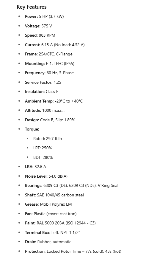 CT005508NPW22,  W22 NEMA Premium Efficiency 5Hp 883 RPM 8P 254/6TC 3Ph 575 V 60 Hz IC411 - TEFC - Foot-mounted