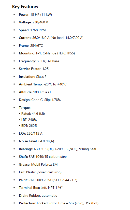 • Bearings: 6309 C3 (DE), 6209 C3 (NDE), V'Ring Seal