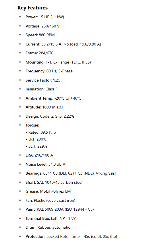 Frequency: 60 Hz, 3-Phase