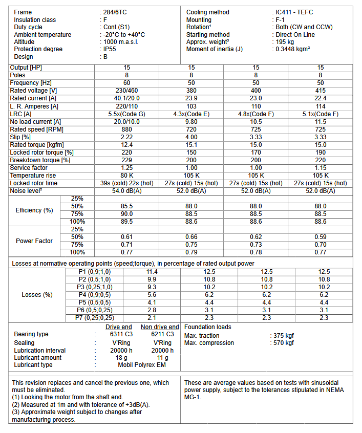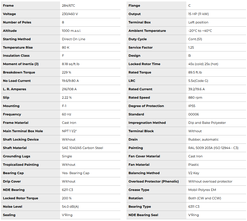 CT015408NPW22, W22 NEMA Premium Efficiency 15Hp 880 RPM 8P 284/6TC 3Ph 230/460//380 V 60//50 Hz IC411 - TEFC - Foot-mounted