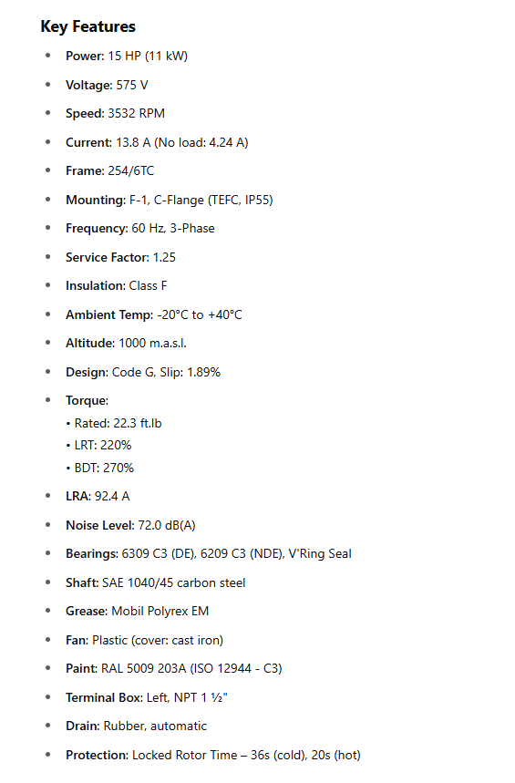 CT015502NPW22, W22 NEMA Premium Efficiency 15Hp 3532 RPM 2P 254/6TC 3Ph 575 V 60 Hz IC411 - TEFC - Foot-mounted