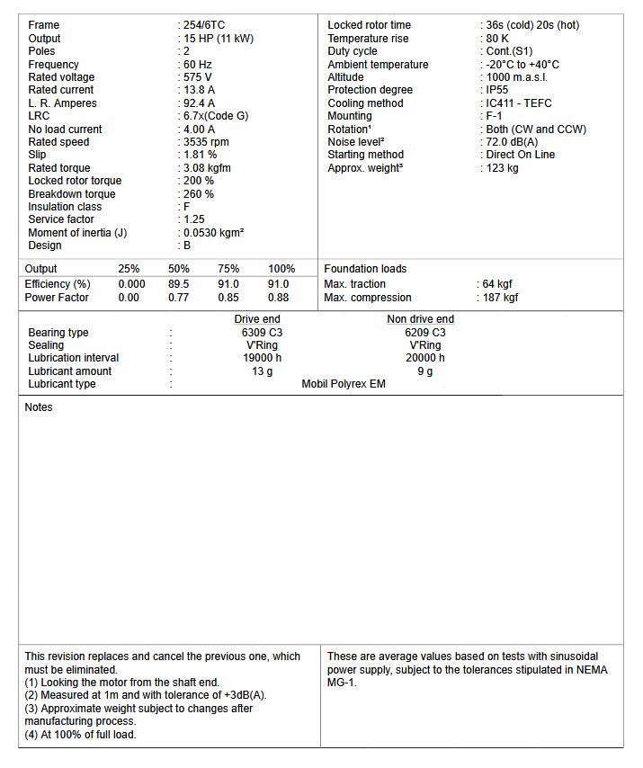Bearings: 6309 C3 (DE), 6209 C3 (NDE), V'Ring Seal