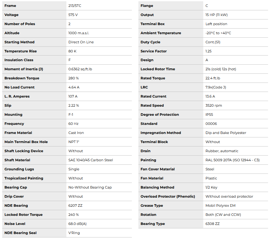 • Frame: 213/5TC, C-Flange