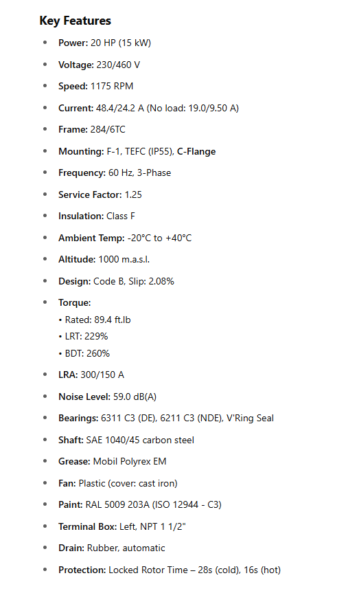 Bearings: 6311 C3 (DE), 6211 C3 (NDE), V'Ring Seal