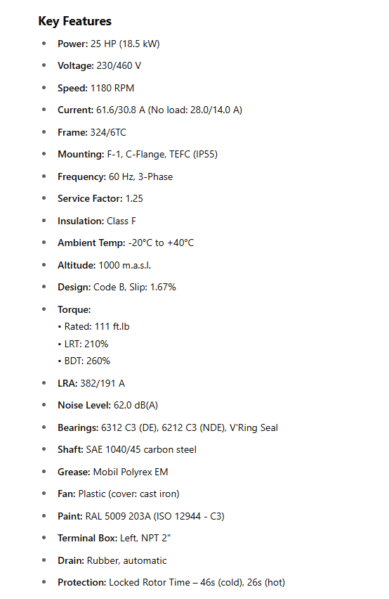 • Bearings: 6312 C3 (DE), 6212 C3 (NDE), V'Ring Seal
