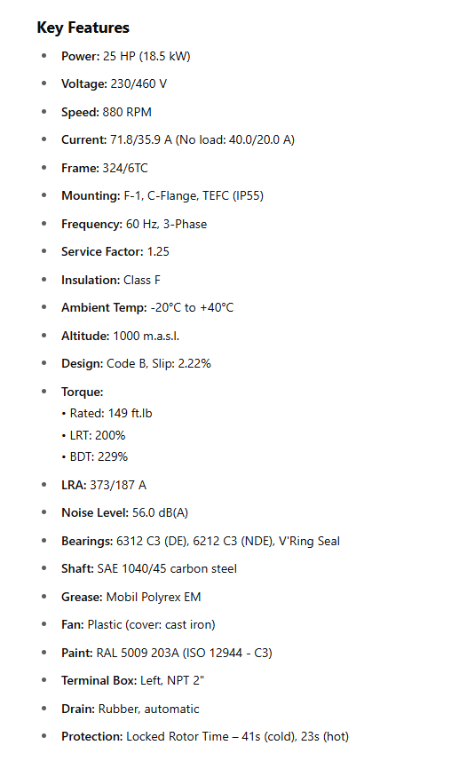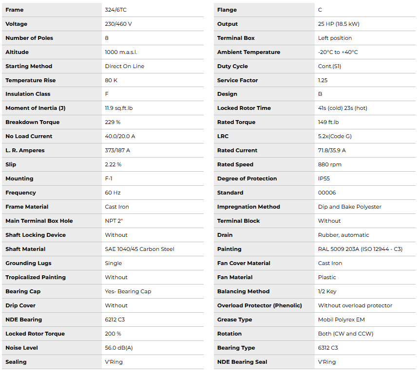 CT025408NPW22, W22 NEMA Premium Efficiency 25Hp 880 RPM 8P 324/6TC 3Ph 230/460//380 V 60//50 Hz IC411 - TEFC - Foot-mounted