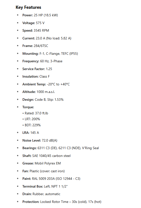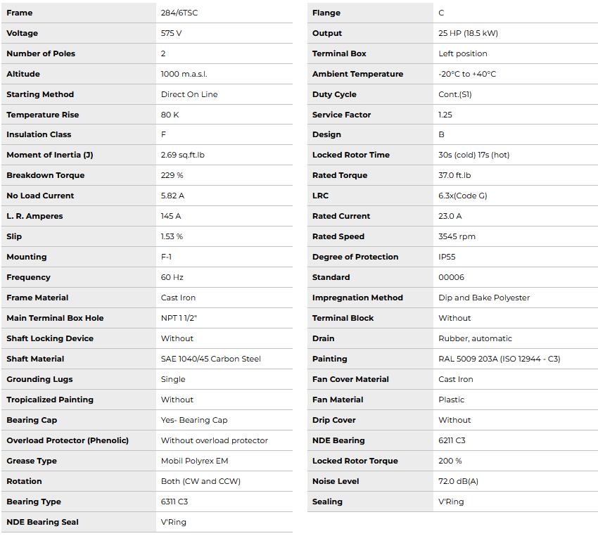 CT025502NPW22, W22 NEMA Premium Efficiency 25Hp 3545 RPM 2P 284/6TSC 3Ph 575 V 60 Hz IC411 - TEFC - Foot-mounted