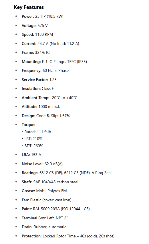 Frequency: 60 Hz, 3-Phase