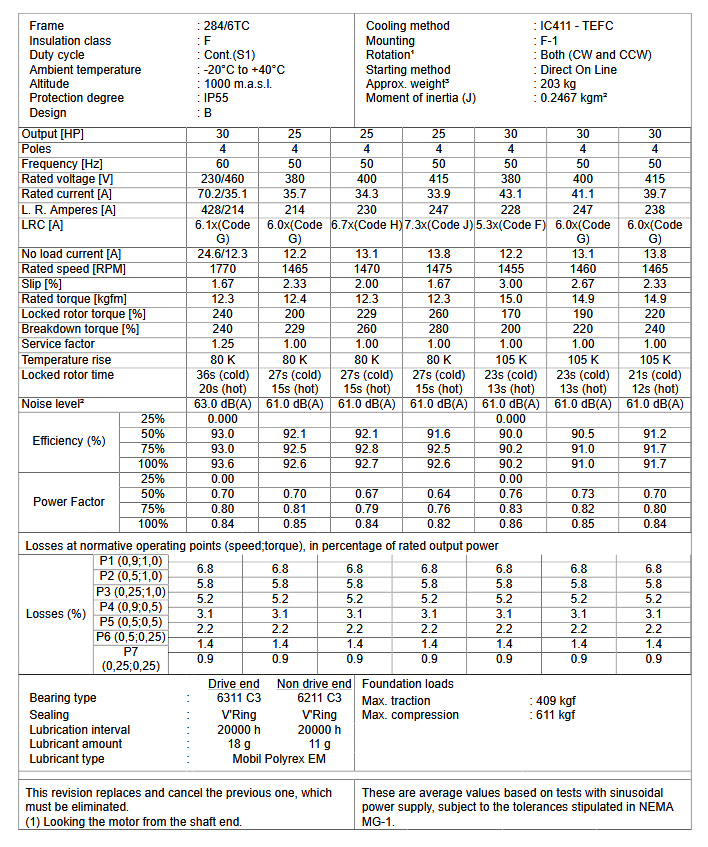 CT030404NPW22, W22 NEMA Premium Efficiency 30Hp 1770 RPM 4P 284/6TC 3Ph 230/460//380 V 60//50 Hz IC411 - TEFC - Foot-mounted