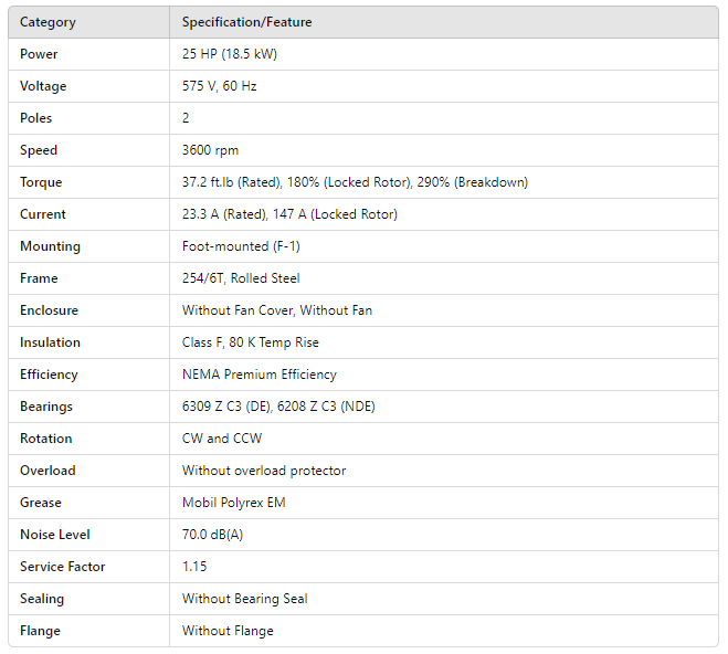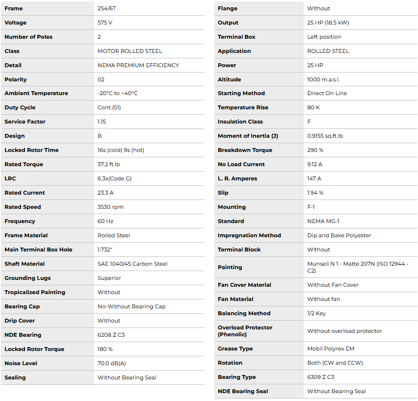 DP025502NPW01, Rolled Steel NEMA Premium Efficiency 25Hp 3530 Rpm 2P 254/6T 3Ph 575 V 60 Hz IC01 - ODP - Foot-mounted