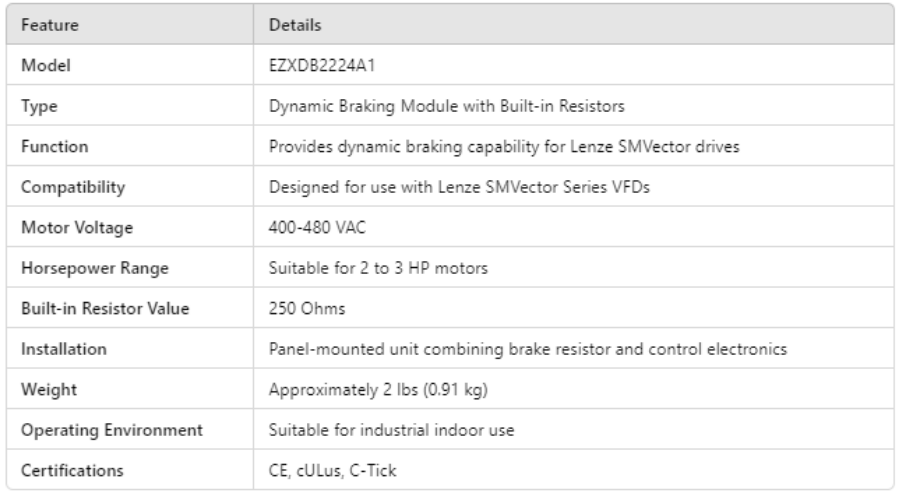 EZXDB2224A1, Dynamic Braking Module Complete With Resistors For 2-3Hp 480V