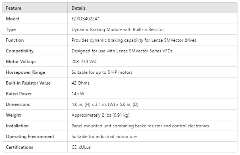 EZXDB4022A1, Dynamic Braking Module Complete With Resistors For 5Hp 240V