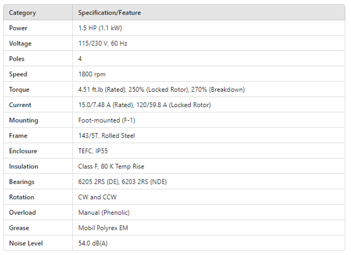 FD001104W01, Rolled Steel 1.5Hp 1745 Rpm 4P 143/5T 1Ph 115/230 V 60 Hz IC411 - TEFC - Foot-mounted