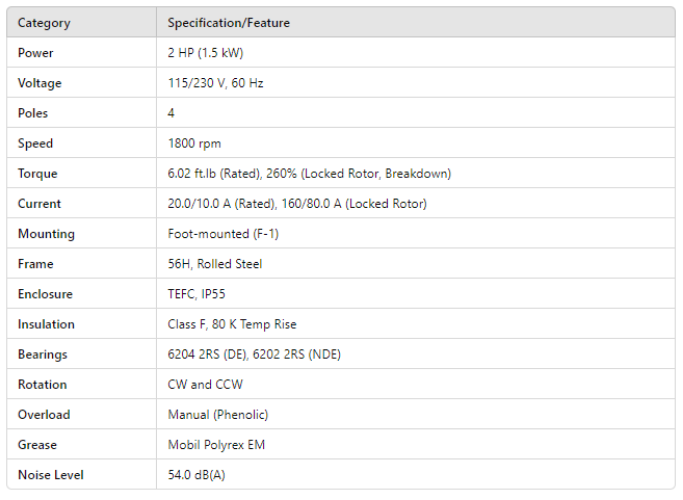 FD002104W01, Rolled Steel 2Hp 1745 Rpm 4P 56H 1Ph 115/230 V 60 Hz IC411 - TEFC - Foot-mounted