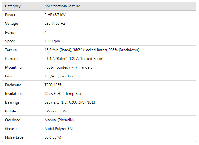 FD005104W22C, W22 5Hp 1730 Rpm 4P 182/4TC 1Ph 230 V 60 Hz IC411 - TEFC - Foot-mounted