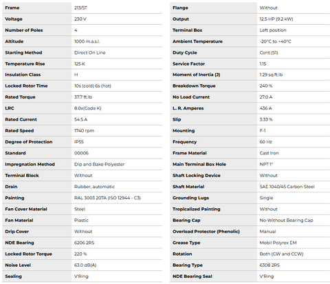 FD012104W22, W22 12.5Hp 1740 Rpm 4P 213/5T 1Ph 230 V 60 Hz IC411 - TEFC - Foot-mounted