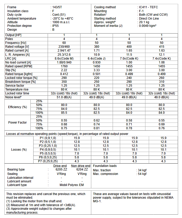 HT000404NPW22, W22 NEMA Premium Efficiency 1Hp 1760 RPM 4P 143/5T 3Ph 230/460//380 V 60//50 Hz IC411 - TEFC - Foot-mounted