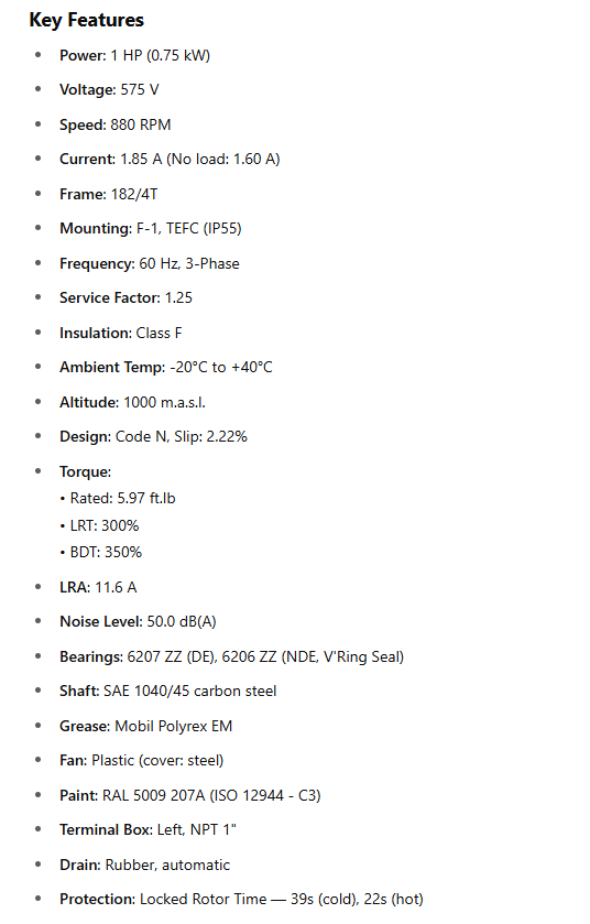 HT000508NPW22, W22 NEMA Premium Efficiency 1Hp 880 RPM 8P 182/4T 3Ph 575 V 60 Hz IC411 - TEFC - Foot-mounted