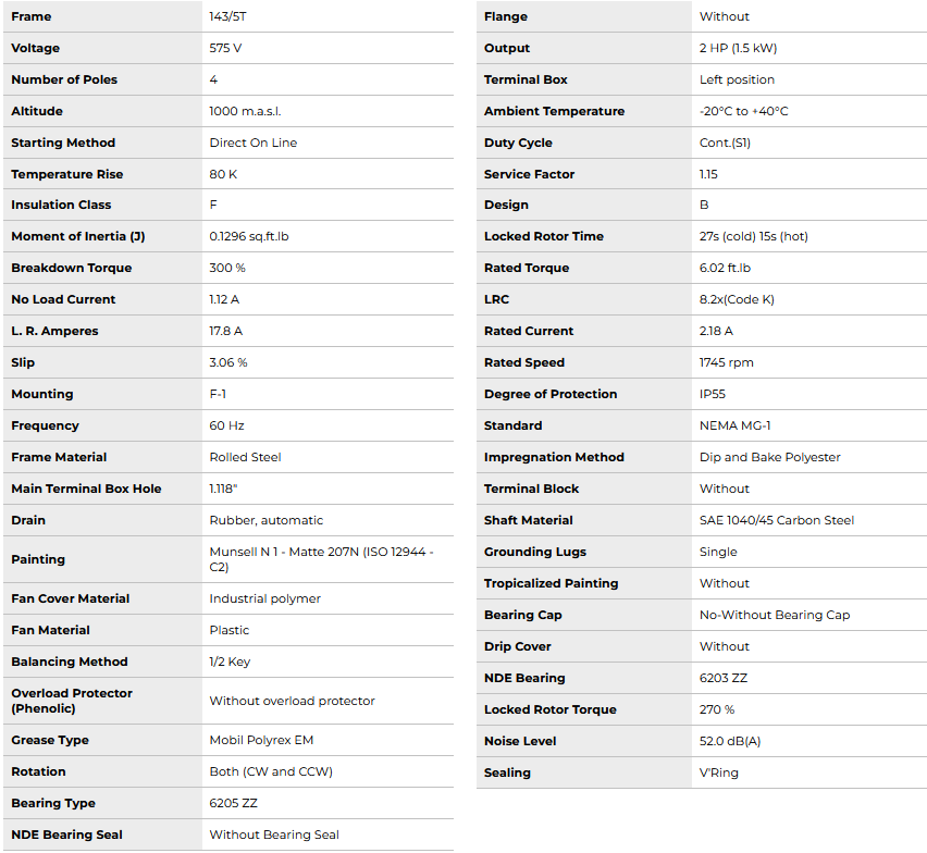 HT002504NPW01, Rolled Steel NEMA Premium Efficiency 2Hp 1745 Rpm 4P 143/5T 3Ph 575 V 60 Hz IC411 - TEFC - Foot-mounted