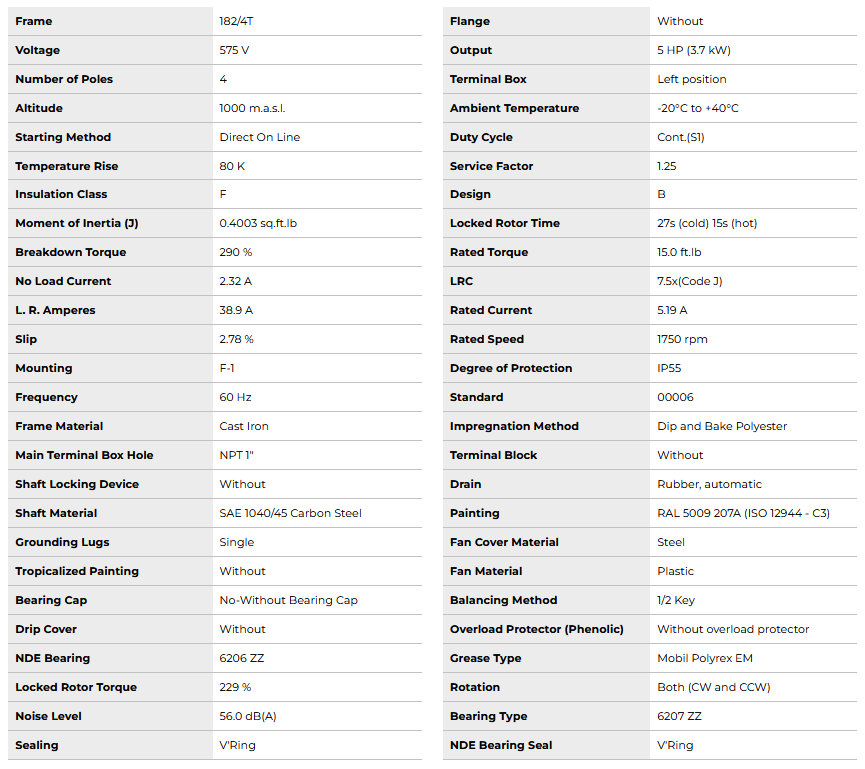 HT005504NPW22, W22 NEMA Premium Efficiency 5Hp 1750 4P 182/4T 3Ph 575 V 60 Hz IC411 - TEFC - Foot-mounted