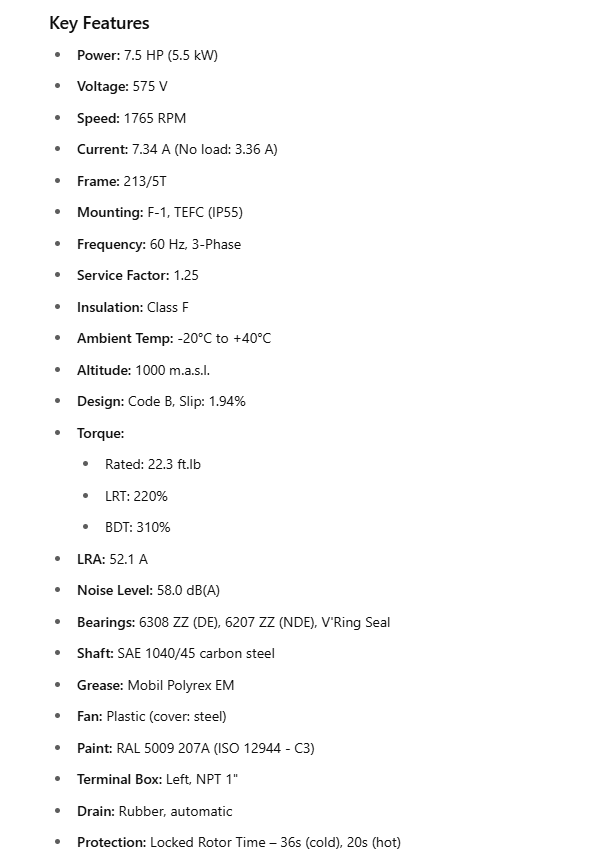Bearings: 6308 ZZ (DE), 6207 ZZ (NDE), V'Ring Seal