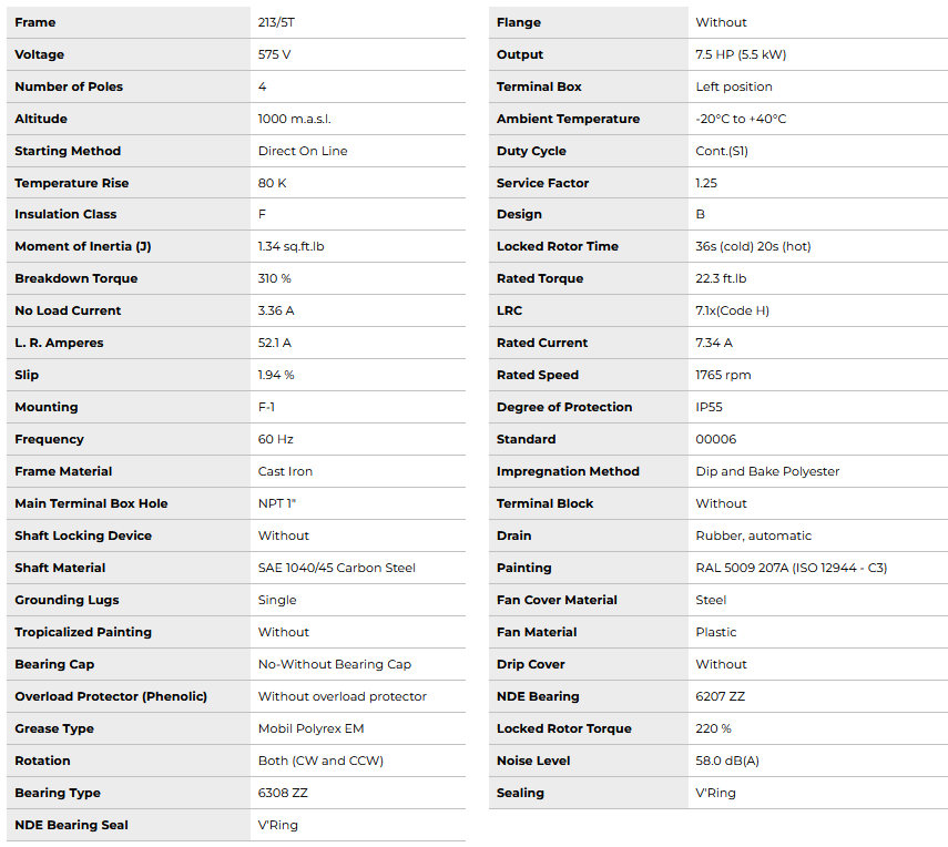 HT007504NPW22, W22 NEMA Premium Efficiency 7.5Hp 1765 RPM 4P 213/5T 3Ph 575 V 60 Hz IC411 - TEFC - Foot-mounted