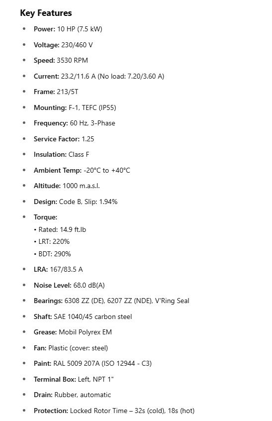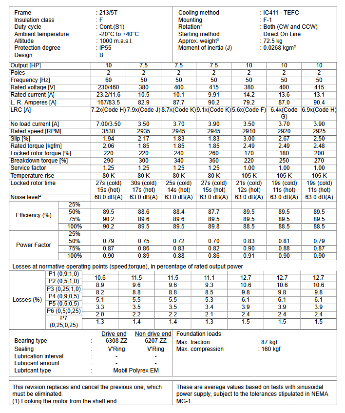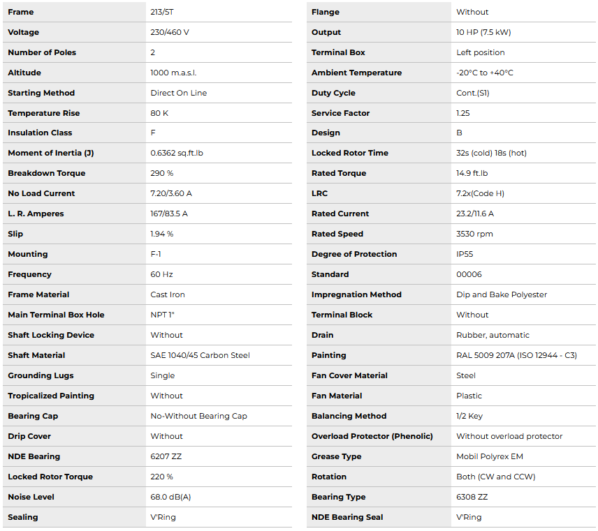 HT010402NPW22, W22 NEMA Premium Efficiency 10Hp 3530 RPM 2P 213/5T 3Ph 230/460//380 V 60//50 Hz IC411 - TEFC - Foot-mounted