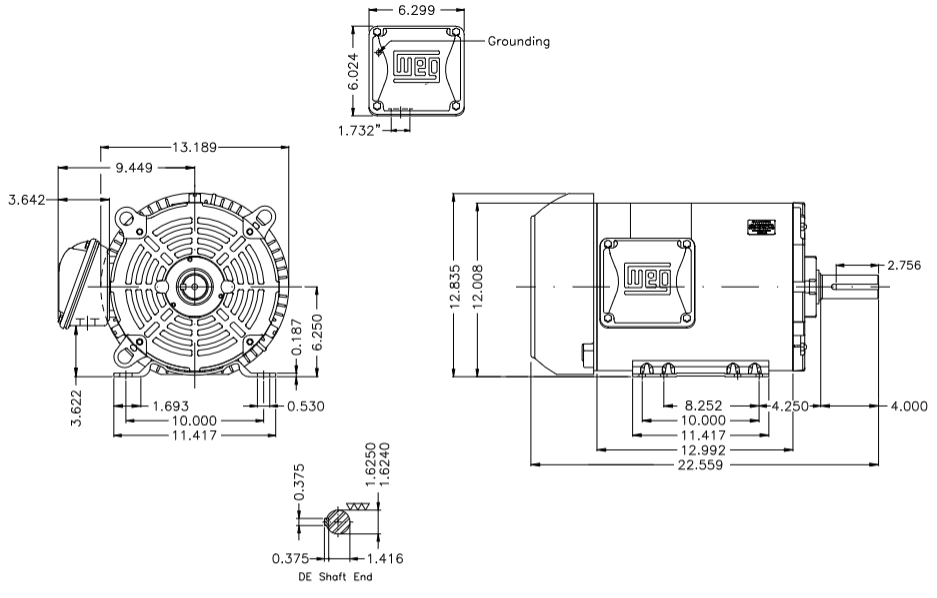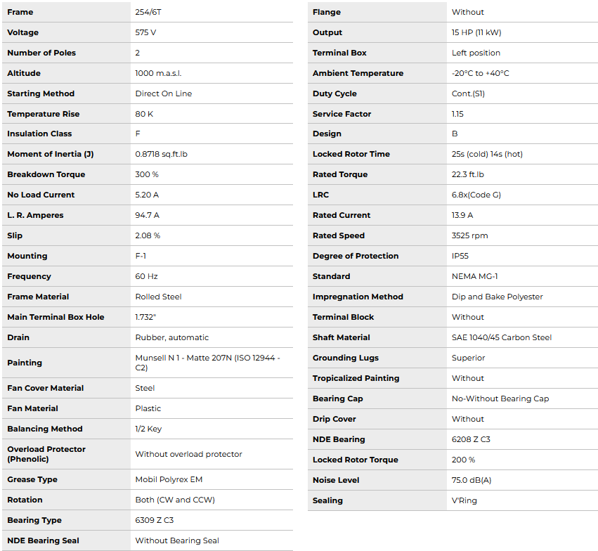 HT015502NPW01, Rolled Steel NEMA Premium Efficiency 15Hp 3525 Rpm 2P 254/6T 3Ph 575 V 60 Hz IC411 - TEFC - Foot-mounted