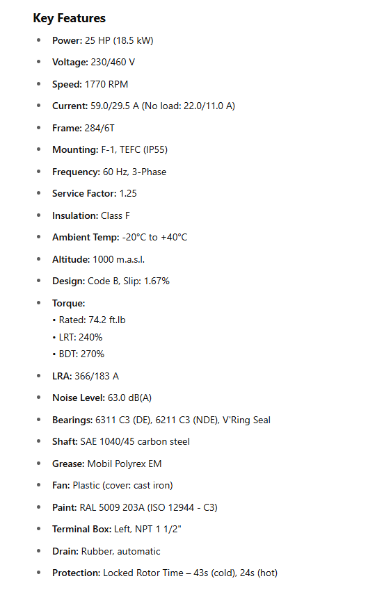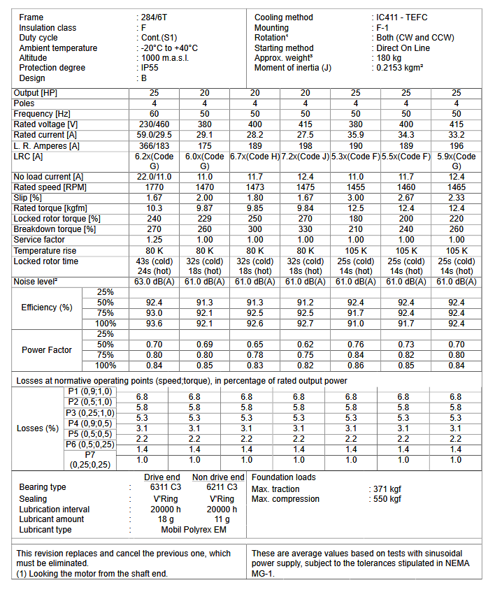 • Bearings: 6311 C3 (DE), 6211 C3 (NDE), V'Ring Seal