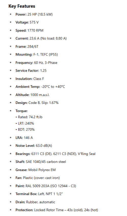 HT025504NPW22, W22 NEMA Premium Efficiency 25Hp 1770 RPM 4P 284/6T 3Ph 575 V 60 Hz IC411 - TEFC - Foot-mounted