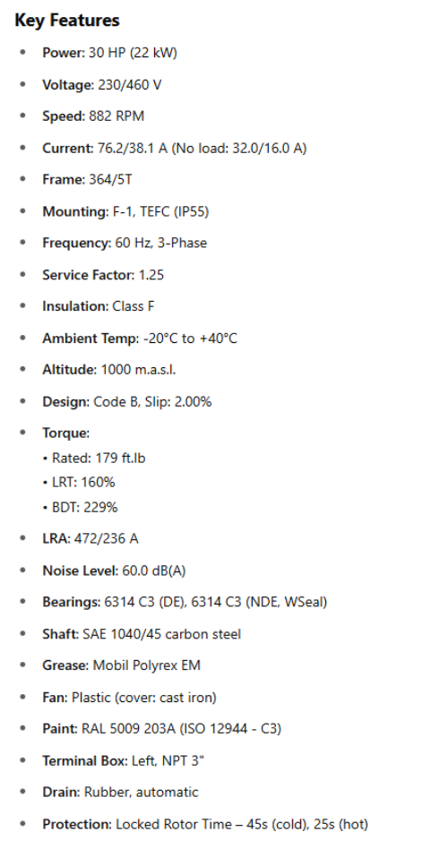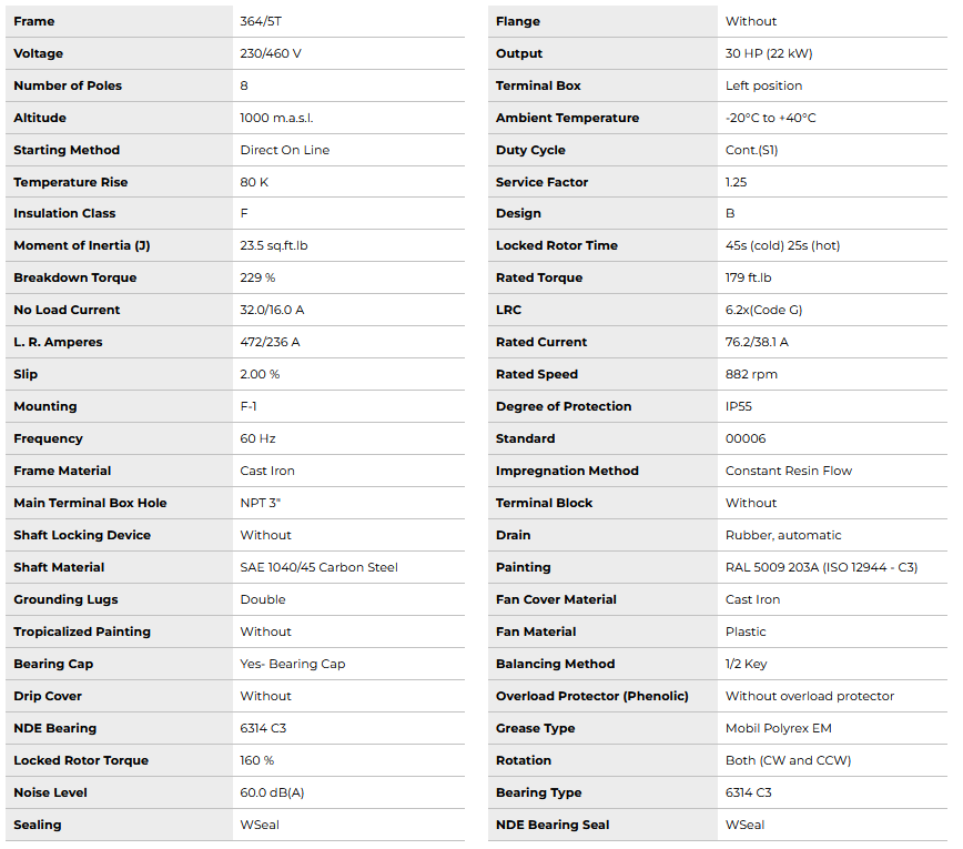 HT030408NPW22, W22 NEMA Premium Efficiency 30Hp 882 RPM 8P 364/5T 3Ph 230/460//380 V 60//50 Hz IC411 - TEFC - Foot-mounted