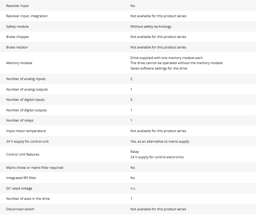 • Encoder input: Incremental encoder (HTL), permanently integrated