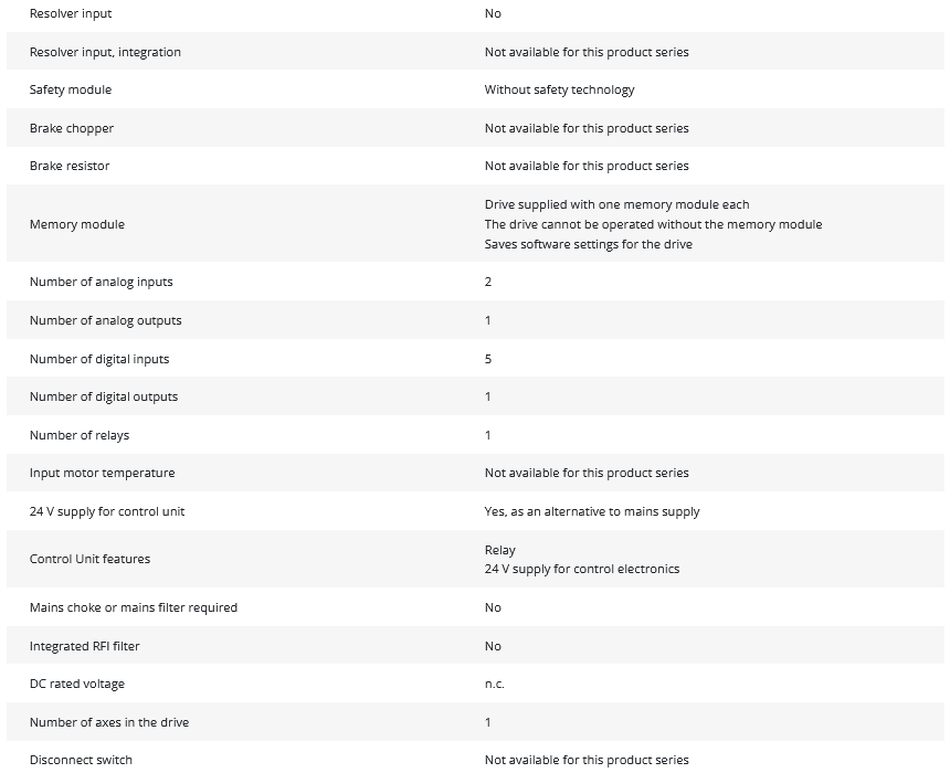 • Light Duty operation: Yes (max. 4 kHz, reduced overload 120%)