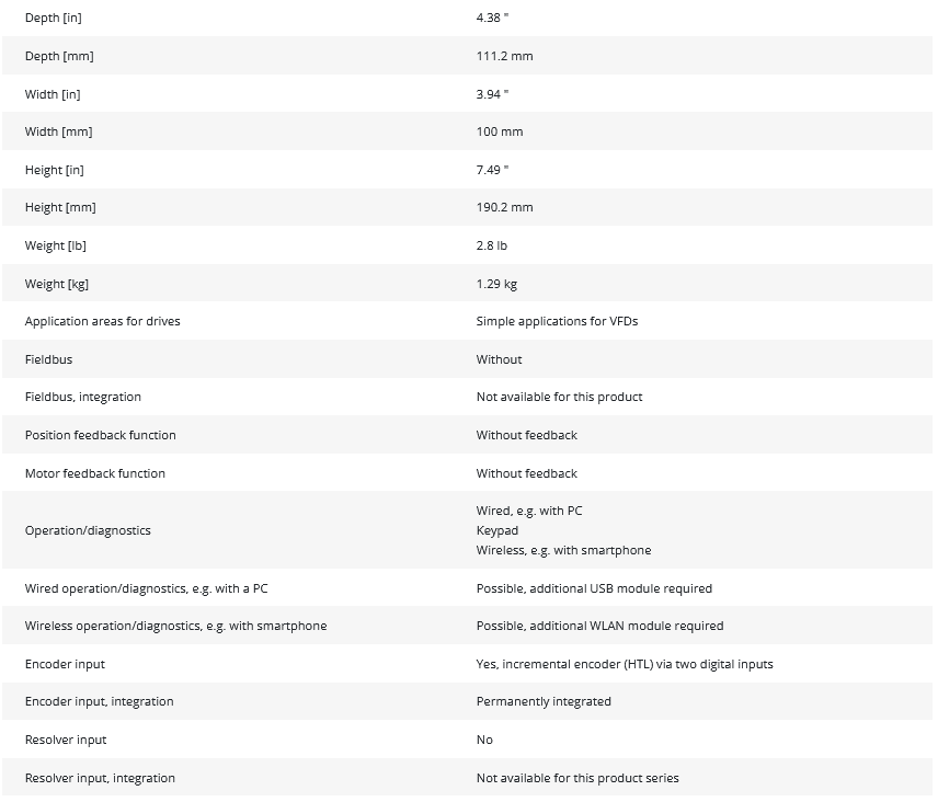 • Encoder input: Yes, incremental encoder (HTL)