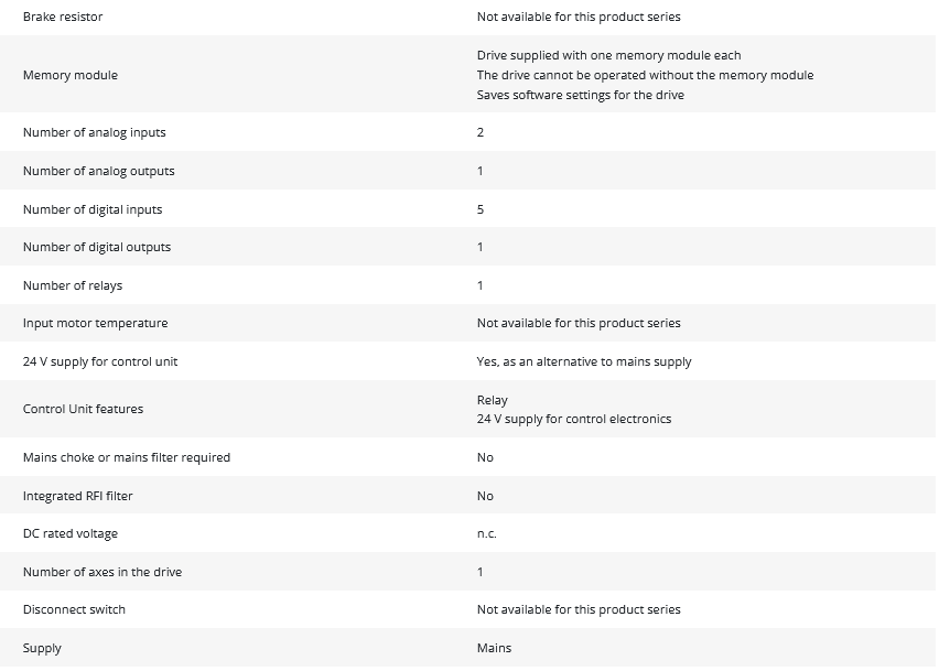 • Light Duty operation: Yes (max. 4 kHz, reduced overload 120%, ambient temp. 40 °C)