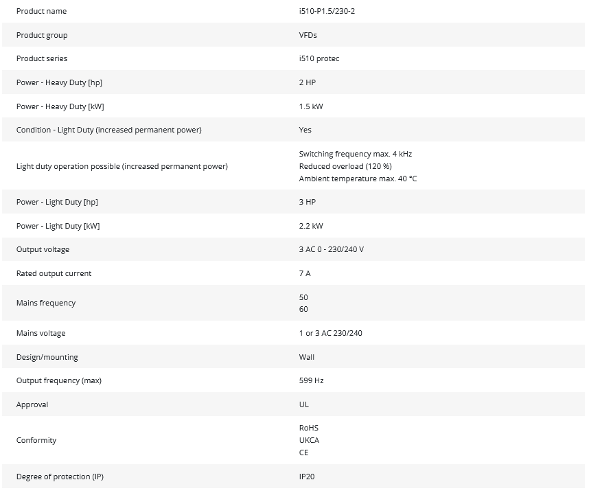 • Product series: i510 protec (VFD)