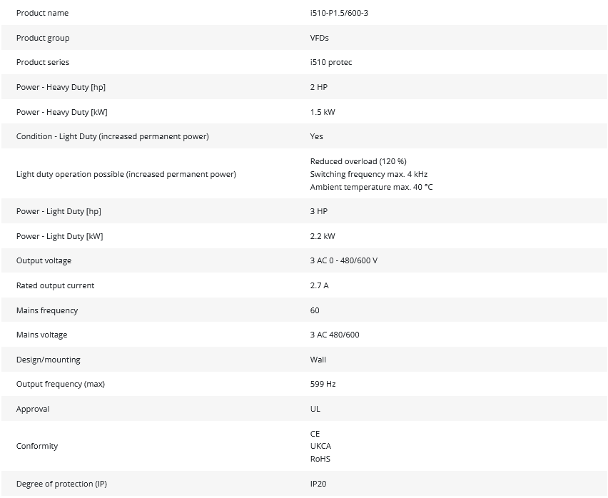 • Product Group / Series: VFDs, i510 protec