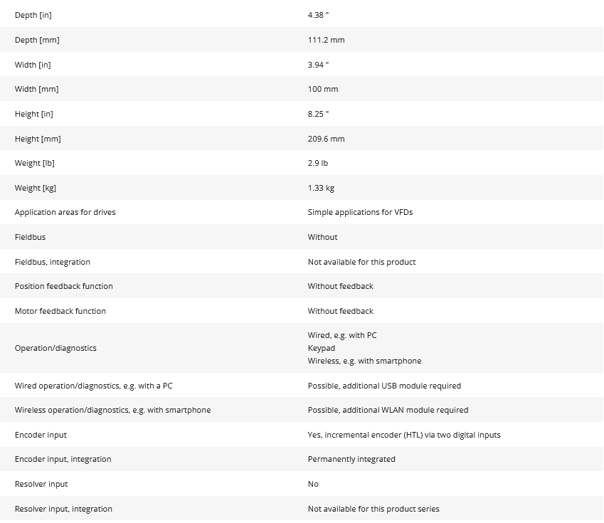 • Encoder Input: Yes, incremental HTL (integrated)