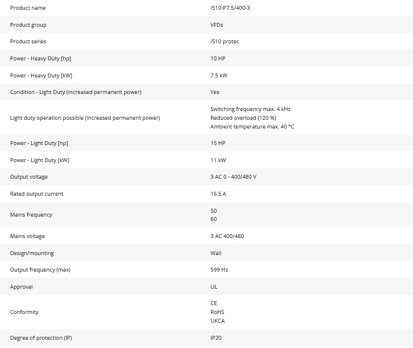 • Product Group / Series: VFDs, i510 protec
