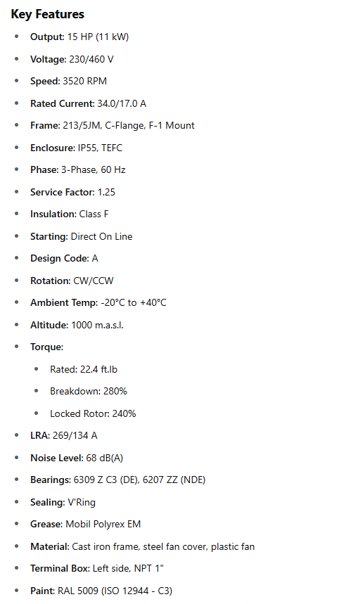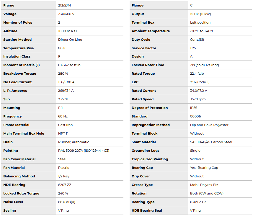 • Frame: 213/5JM, C-Flange, F-1 Mount