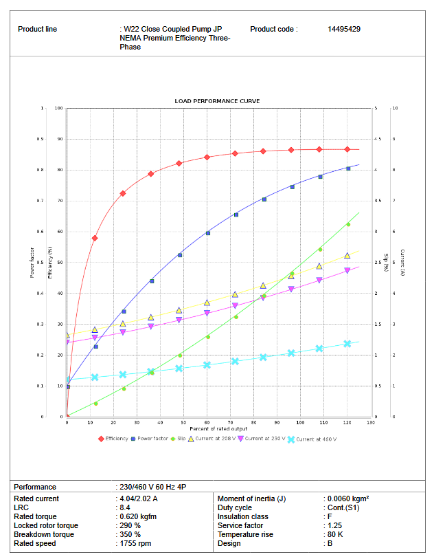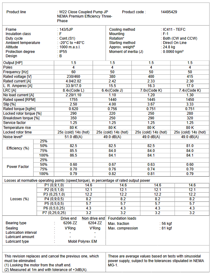 JP001404NPW22, W22 Close Coupled Pump Jp Nema Premium Efficiency 1.5Hp 1755 RPM 4p 143/5jp 3ph 230/460 V 60 Hz Ic411 - Tefc - Foot-Mounted