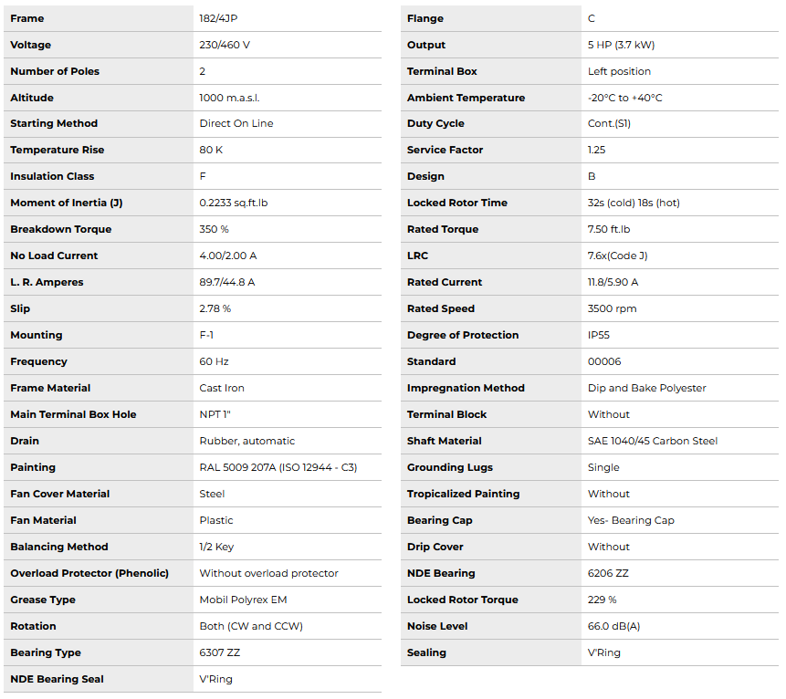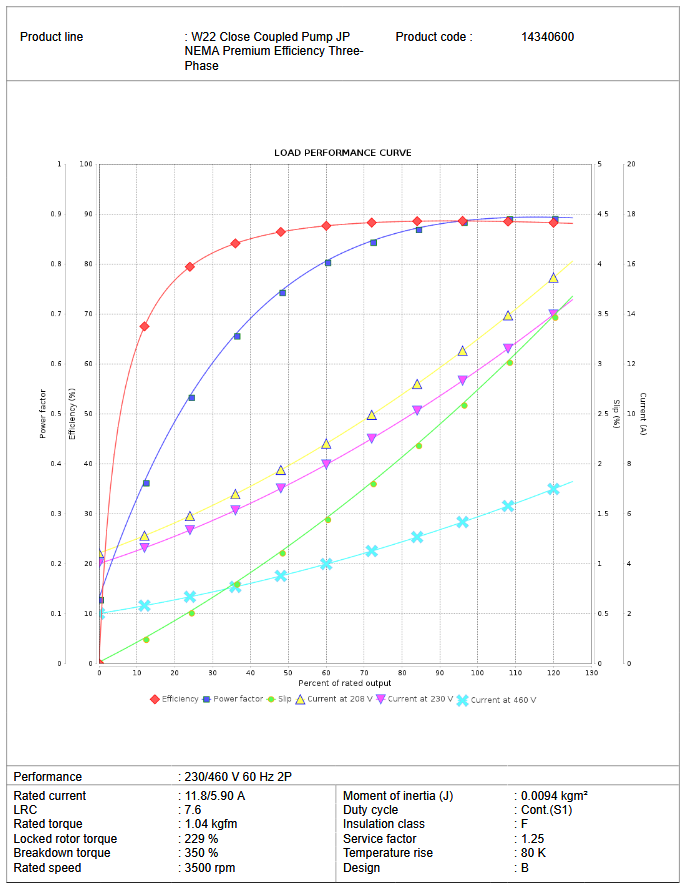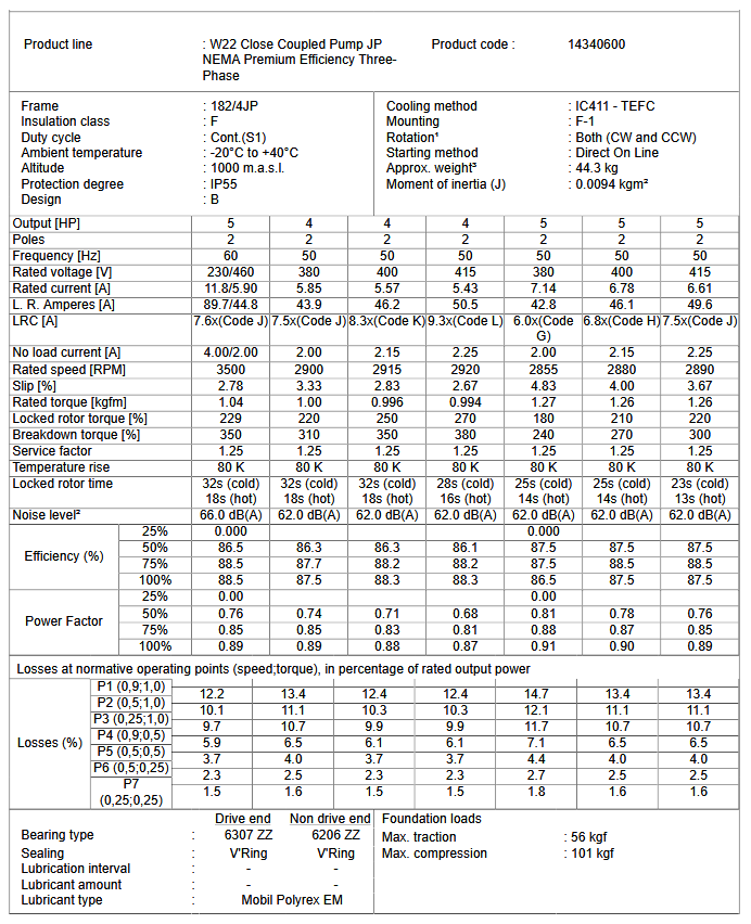 JP005402NPW22, W22 Close Coupled Pump JP NEMA Premium Efficiency 5Hp 3500 RPM 2P 182/4JP 3Ph 230/460 V 60 Hz IC411 - TEFC - Foot-mounted