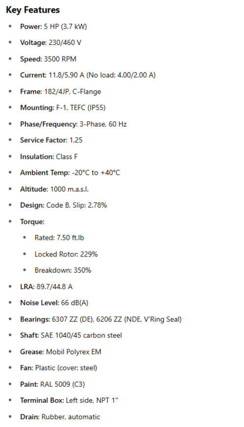 Bearings: 6307 ZZ (DE), 6206 ZZ (NDE, V'Ring Seal)